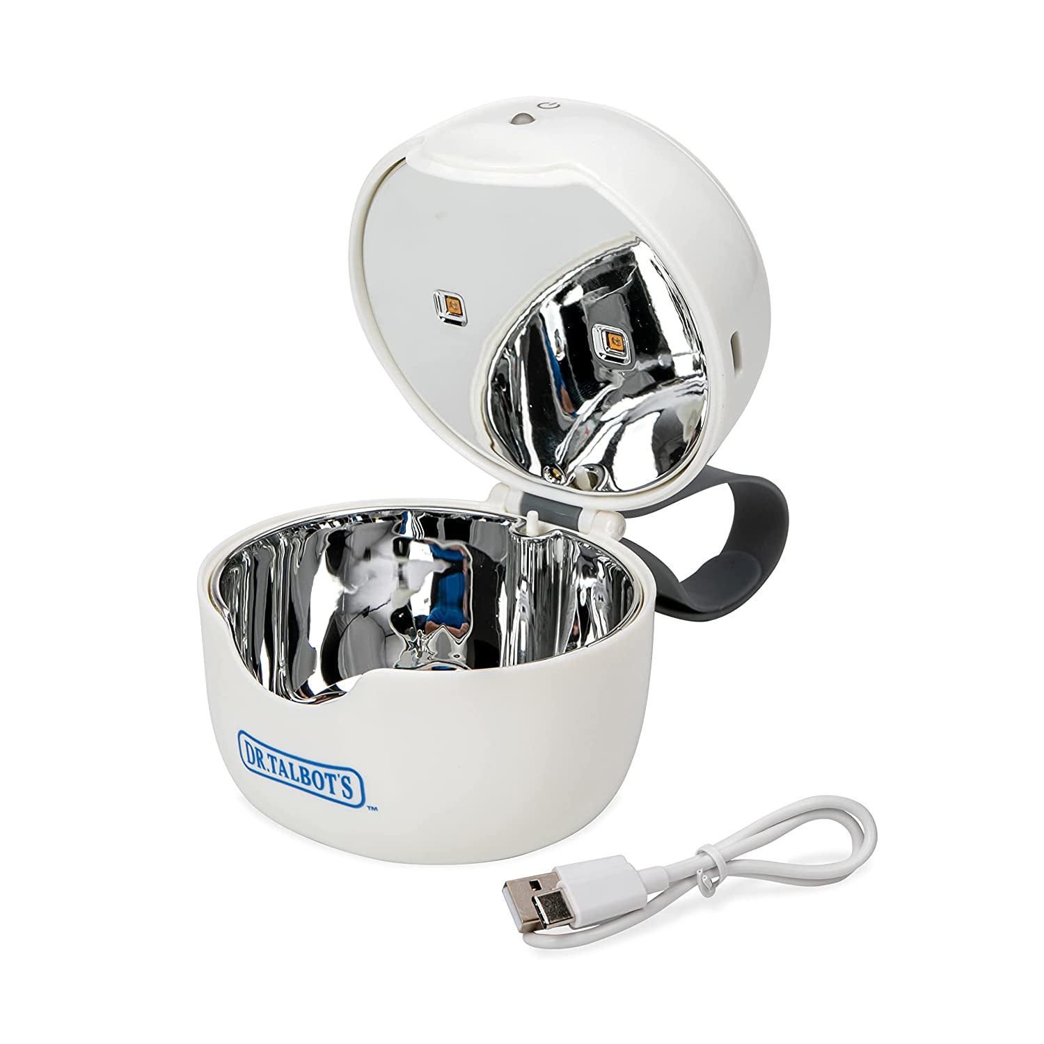 The 5 second rule doesn’t apply to everything. Maintain your peace of mind with Dr. Talbot’s Portable UV-C Sanitizer. Conveniently sanitize pacifiers and teethers when you’re on the go. as the Portable UV-C Sanitizer doesn’t require water or chemicals. Made to work quickly and efficiently. the portable sanitizer kills Staph. Salmonella. Kleb in 60 seconds. With the option of using 3 AA batteries or the included USB cable to power the portable sterilizer. you can always be sure that your child’s favorite pacifiers and teethers are at the ready whether at home or at the park.